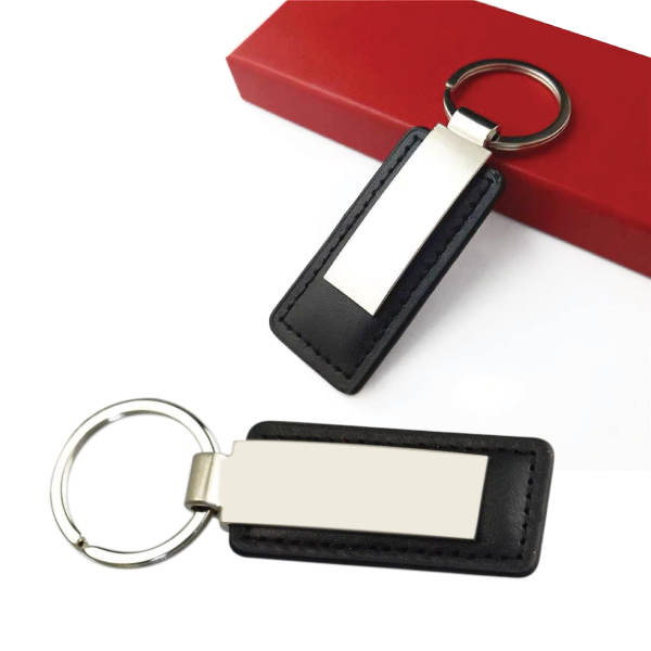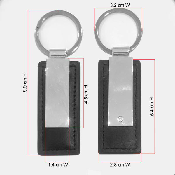 METAL LEATHER KEYCHAIN Silver plate leather strap loop silver split ring Product Size : 99 x 28 mm Printing Option: UV Printing, Screen Printing, Engraving