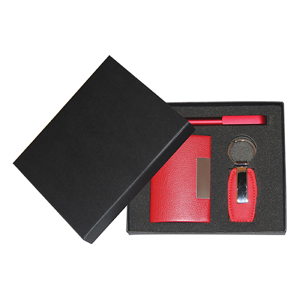 PROMOTIONAL GIFT SETS AKE 10 : Metal with Leather Keychain APP 005 : Plastic Pen Red ACH 06 : Business Card Holder Packing Top Small Gift Box Size:17 x 14.5 x 2.6 cm